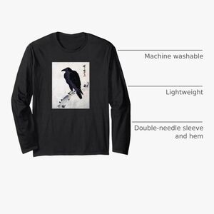 Stylish black Japanese inspired art long sleeve shirt featuring a striking raven print. Perfect for casual wear. NWT AND IN EXCELLENT CONDITION!