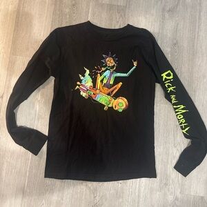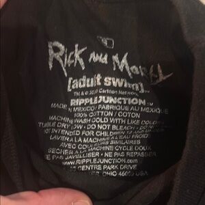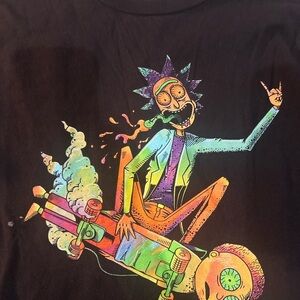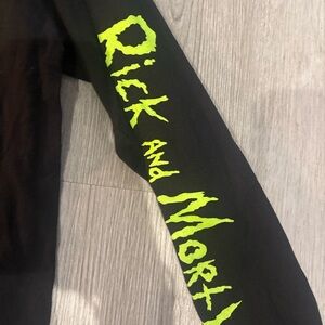 • Design: Psychedelic Rick and Morty graphic on front, neon logo on right sleeve