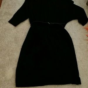 This elegant long sleeved black dress has never been worn. Perfect for work, and dressing up with accessories for a night out. Semi-loose fitting on top, with a drape in the skirt.