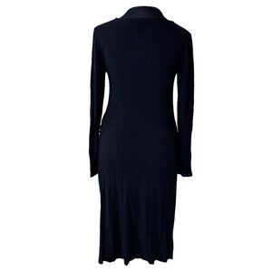 Black Long-Sleeve Midi Dress M Stretchy Viscose Blend