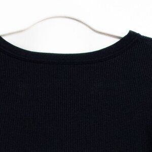 Black Long-Sleeve Thermal Knit Crewneck Pullover