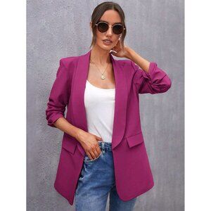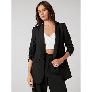 Black Longline Blazer Open Front Minimalist Business Casual