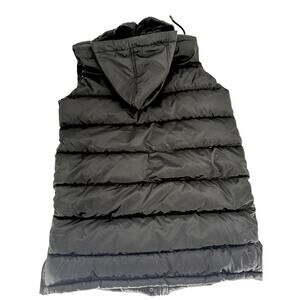 Black Longline Puffer Hooded Small Women Padded Sleeveless Vest Jacket Zip Snap