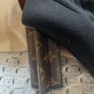 Fashion forward authentic LV booties. Artistic eye catching LV monogram 4 inch heel. Worn only a few times. Comes with shoes covers and original storage box.