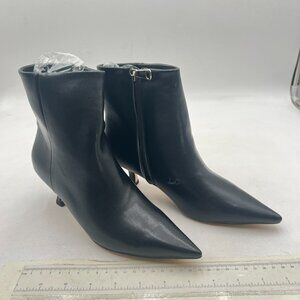 Black Low Heel Ankle Boots Pointed Toe Bootie Chelsea Zipper Fall Fashion Shoe