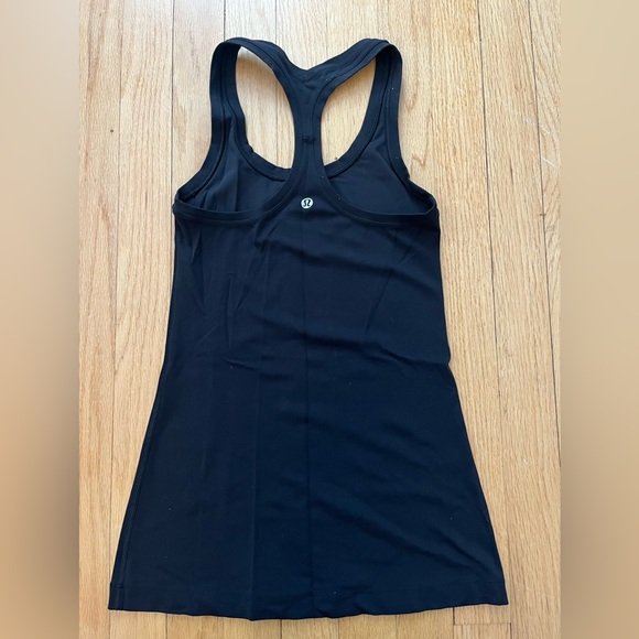 This is a black lululemon tank top with the align material. It’s full length with two straps that connect to one in the back. It’s been worn only a handful of times, looks as if it’s brand new. They sell one similar to this still, but it is not the same exact same.