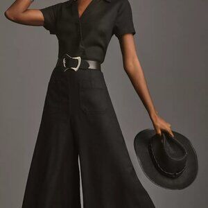 Beautiful Maeve black jumpsuit. Fabric belt. Wide leg.