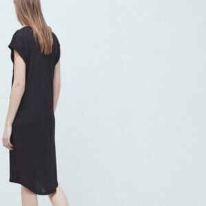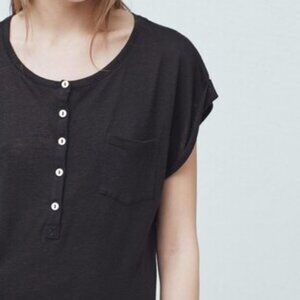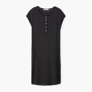 Black Mango Button Front T-Shirt Dress -Button-front placket -Left chest pocket -Rolled-cuff sleeves -60% poly/40% linen -
