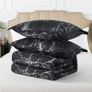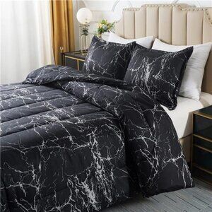 Black Marble Comforter Set Full Size, 3 Pieces Modern Pattern Soft Microfiber