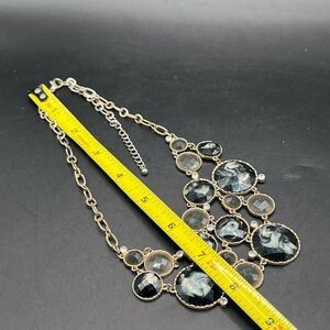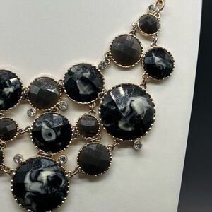 Black Marbled Statement Bib Necklace Gold Tone Chain Rhinestones Classic Boho