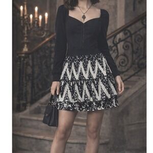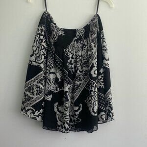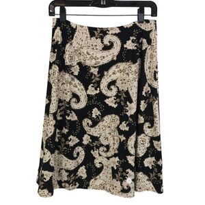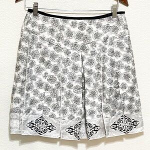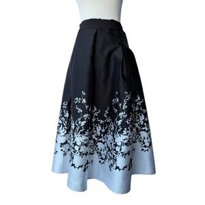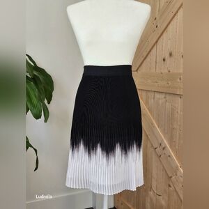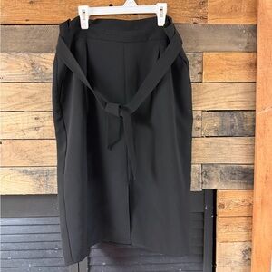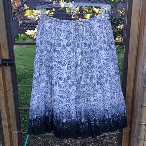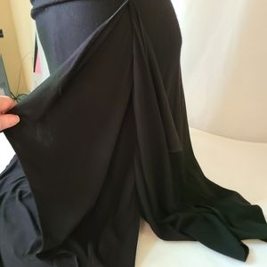 White House Black Market WHBM Black, asymmetrical skirt, soft, flouncy skirt Rayon and spandex. W/ slit on one side.