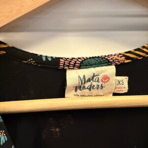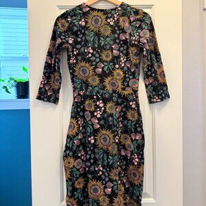 Faux wrap dress made of organic jersey for a dress. Black with floral pattern. 95% Organic Cotton 5% Spandex. Never worn. Size XS