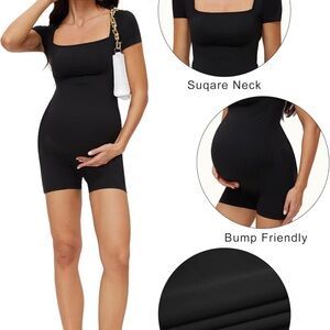 Stylish black maternity bodysuit with short sleeves. Perfect for comfort and style.