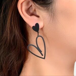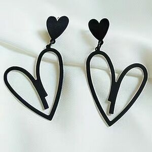 Black Matte Double Love Heart Drop Dangle Earrings. Black matte metal heart shaped cutout earrings. Easy to dress up or wear casually. New. Bundle to save! Great gift for yourself or friend.