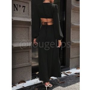 Black Maxi Dress Chain Strap Detail Cut Out Long Lantern Sleeve Leg Slit