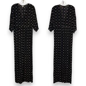 Society Amuse Black Maxi Dress Embroidered Beach Button Up in a Size Large