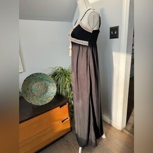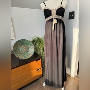 Black Maxi Dress w/ Spaghetti Straps Empire Waist & Cream Crochet Trim size XS