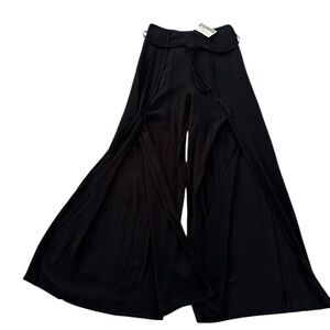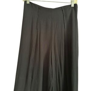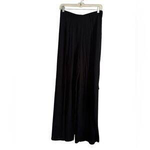 These black wide leg pants offer a relaxed fit perfect for casual outings or resort wear. The flowing design provides comfort and style, making them a versatile addition to any wardrobe. Ideal for pairing with a variety of tops, these pants are a staple for effortless elegance.