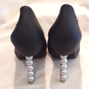 Black Melissa x Karl Lagerfeld "PEARL" Bead Peep Toe Heel Pumps US Size 7