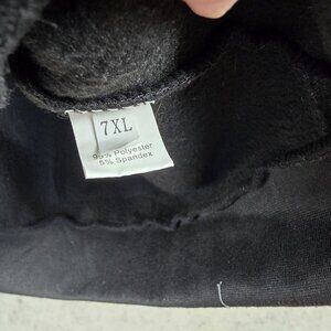 This black polyester-blend sweatshirt offers a relaxed fit in a 7XL size. Featuring a half-zip closure, ribbed cuffs, and hem, it's ideal for layering or casual wear. Made of 95% polyester, with added stretch from 5% spandex, ensuring comfort and flexibility. Machine washable; care tag included. Overall great condition.