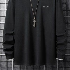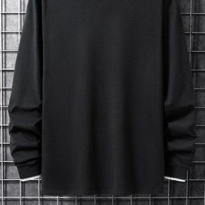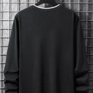 Black Casual Mens Letter Graphic Contrast Trim Tee