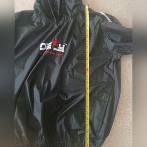 Rubberized inner lining.Comes with a Hood and Embroidered Logo on the Front of Shirt and Trouser.