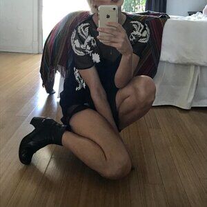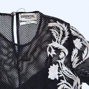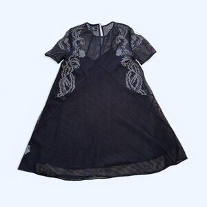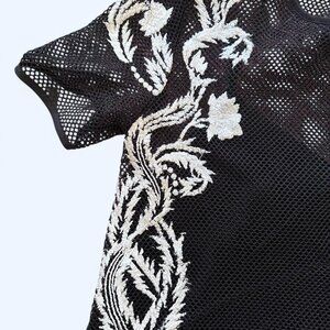 Flowy black mesh dress with white embroidery - has slip underneath.