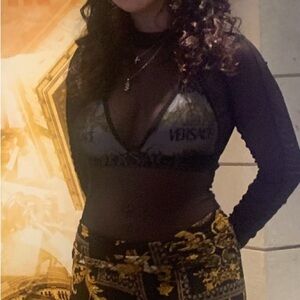 Black Mesh Bodysuit with High Neck and Long Sleeves