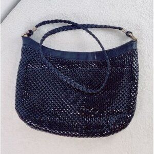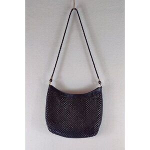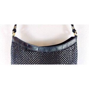 Black Mesh Handbag Shoulder Strap Braided Leather Glossy Day Evening 8x11 Purse