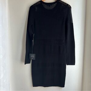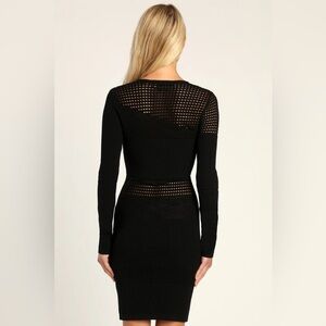 The Lulus Sheer Expressions Black Long Sleeve Knit Bodycon Mini Dress truly says it all! Stretchy knit fabric shapes this flattering bodycon dress. Long ribbed sleeves (with semi-sheer pierced panels at the elbow) frame a bodice with a round neckline and an asymmetrical, pointelle knit yoke. Ribbed knit covers the bust, atop a sheer panel at the waist. Figure-hugging skirt (in alternating ribbed knit and semi-sheer panels) completes the look.