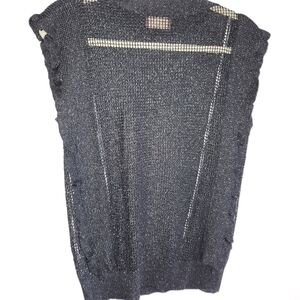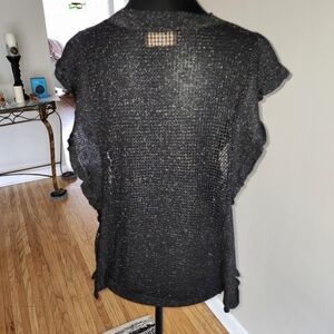 Stylish black mesh knit top with ruffles on each side. Perfect for layering.
