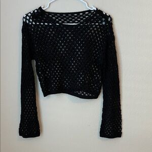 Elevate your style with this chic black mesh knit top. Perfect for layering or wearing on its own for a bold look.