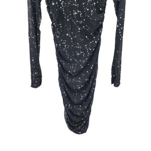Black Mesh Long-Sleeve Bodycon Dress Sz M Star Constellation Print Witchy Gothic
