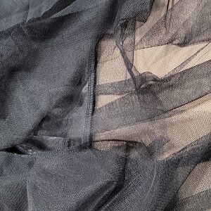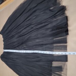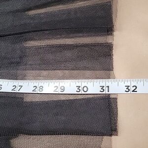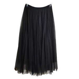 Black Mesh Overlay Midi Length Pleated Skirt. Brand is "Ericger" and Size is "F". Please refer to measurements in photos to ensure proper fit.
