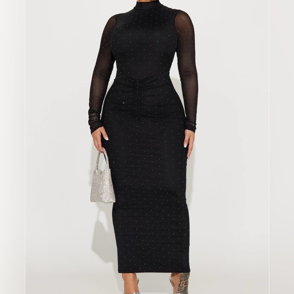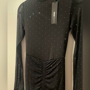 Black Mesh Rhinestone Dress