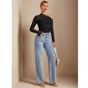 Off One Shoulder Long Sheer Sleeves and Sheer Tummy