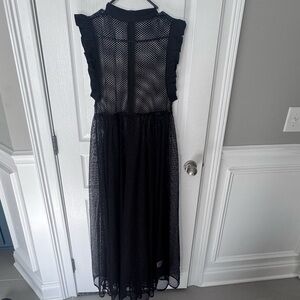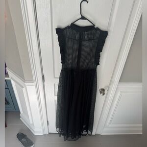 Elegant black mesh dress with ruffle sleeves. Perfect for any occasion.