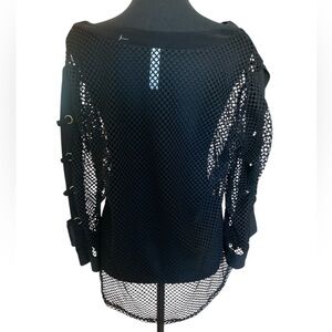Black Mesh Sheer Knit Top Silver Grommet Sleeve Details NWT Edgy Goth Size Large