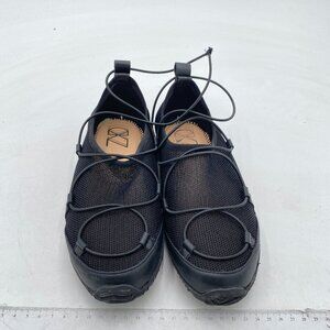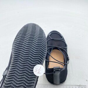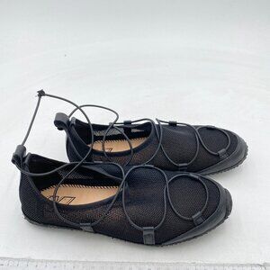Black Mesh Womens Round Toe Ballet Flats Lace Up Comfort Shoes