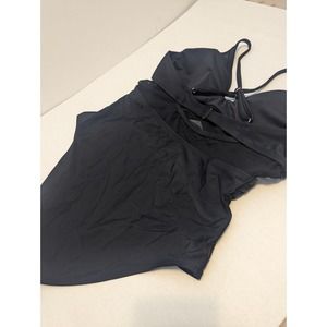 Black Mesh Wrap Front Cutout One Piece Swimsuit size Large