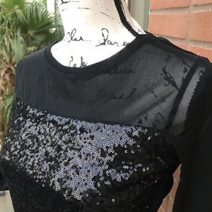 A Simply stunning top, perfect for the upcoming holidays. A perfect blend of black sequins and tight mesh, cut beautifully to come in at the waist a little bit. This beauty is sure to turn some heads. Labeled a SP but has excellent stretch to it. Very adaptable and forgiving