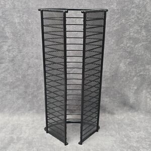 Black Metal CD Holder Shelf Organizer Rack Stand Tower for Compact Discs. Holds 20 Single CD's. Good preowned condition with normal signs of wear.