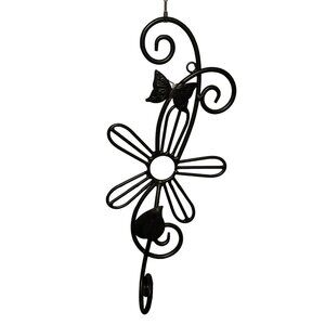 Black Metal Decorative Flower & Butterfly with Swirl Design Wall Hook