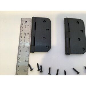 Black Metal Door Hinges Set Of 2 With Rounded Corners 4” 4 Holes Door Hardware.