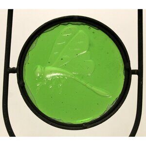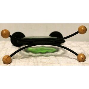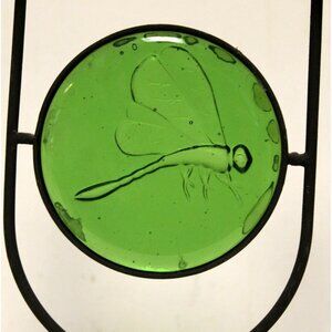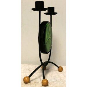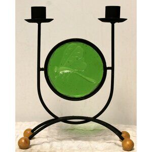 Black Metal Double Taper Dinner Candle Holder Green Glass Dragonfly Decor