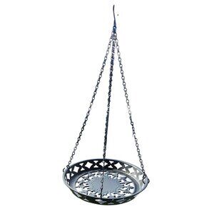 • 12-inch wide hanging basket with intricate stenciled metalwork