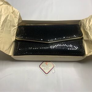 Black Metal Mesh-Metal Gold Tone Metal Trim Evening Shoulder Purse or Clutch