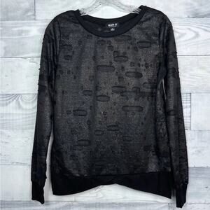 Black Metallic | Distressed Medium Pullover | Allen B. Schwartz | Black Ripped
