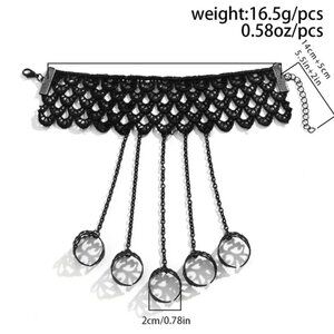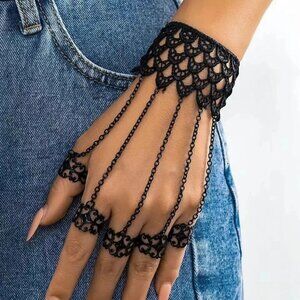 Black Metallic Lace Bracelet With Attached Finger Rings, Goth, Halloween