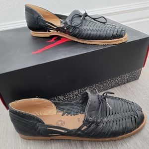 JVS ARTESANOS Genuine black leather sandals huaraches lace detail. '26' printed on but I wear 8.5/9. The leather will eventually mold to your foot.